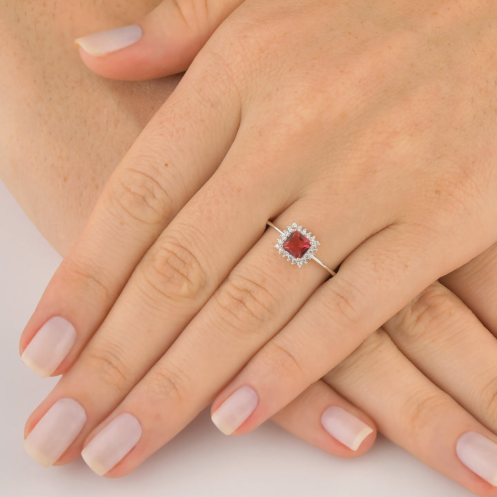 Anel Kate pedra Ruby quadrada cravejada ao redor