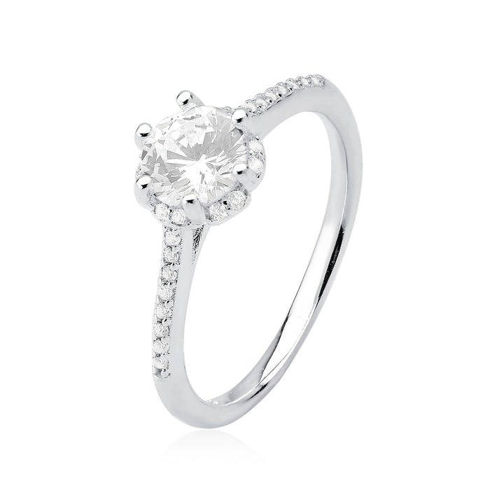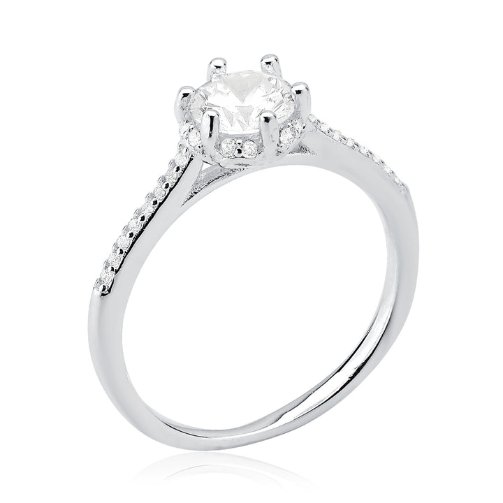 Anel Solitário Estelar com Pedra Robusta de 8mm todo cravejado