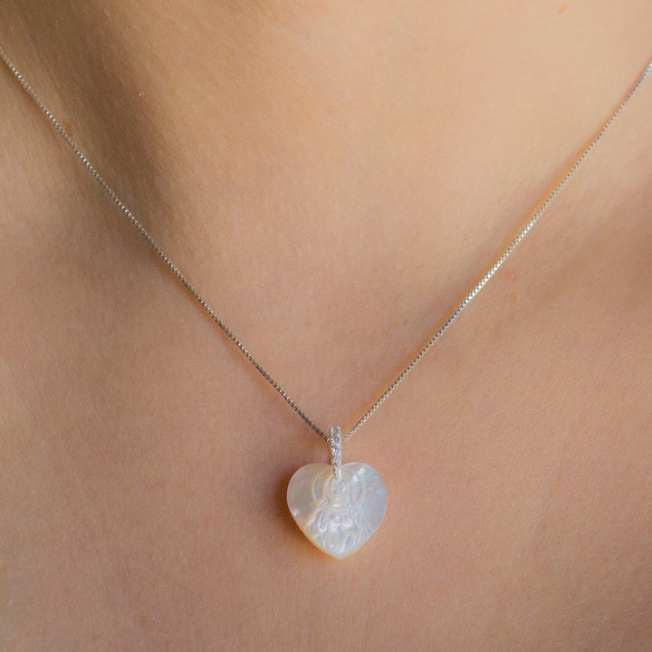 Colar em Madre Pérola esculpido frente e verso Sagrado Coração de Jesus