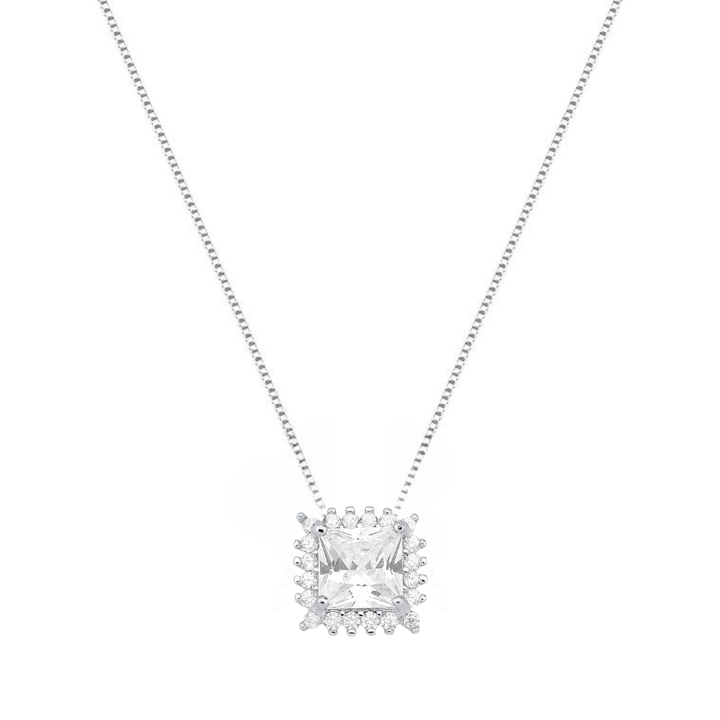 Elegante e sofisticado, este conjunto é confeccionado em Prata 925 de alta qualidade. A peça central traz uma pedra cristal quadrada lapidada, que reflete a luz com brilho intenso. Ao redor, delicados cravejados de zircônias realçam o design e conferem ainda mais luminosidade. Um acessório versátil que combina com produções do dia a dia e ocasiões especiais, unindo delicadeza e modernidade em cada detalhe.