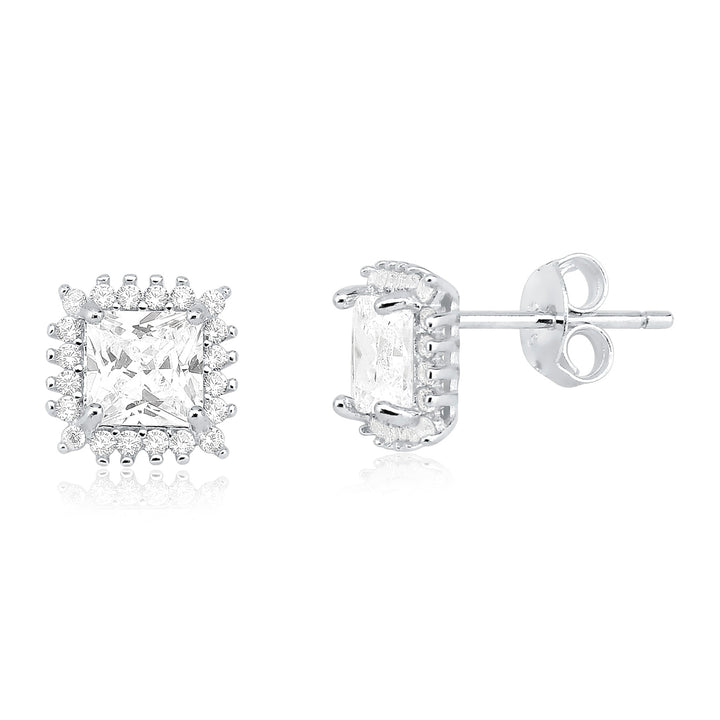 Conjunto em Prata 925 com Pedra Quadrada Cristal e Cravejado