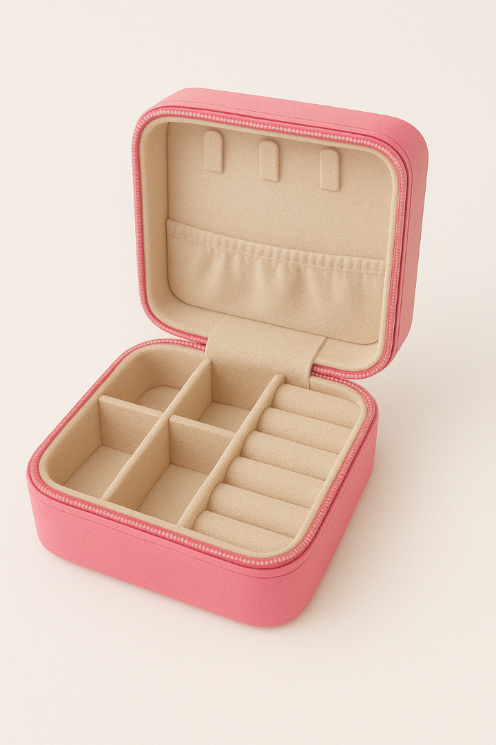 Seu design inclui divisórias para separar anéis, brincos, colares e pulseiras, evitando que se enrosquem ou sejam danificados. Com fechamento em ziper é ideal para quem gosta de manter suas joias bem cuidadas