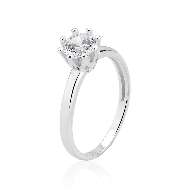 Com um toque de realeza este anel solitário em Prata 925, uma peça que une sofisticação e presença marcante. Seu design é protagonizado por uma zircônia central de 6mm em formato de coroa, lapidada para refletir a luz com intensidade e criar um brilho delicado, porém notável.