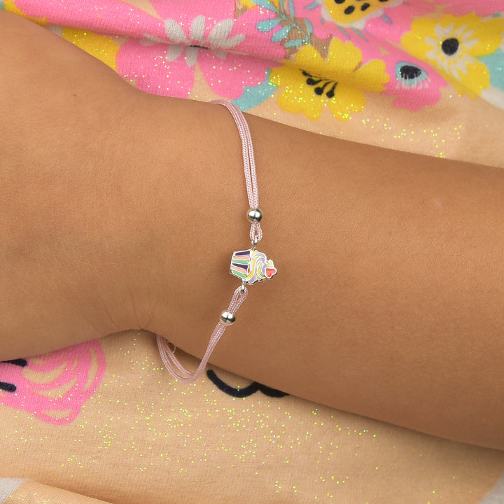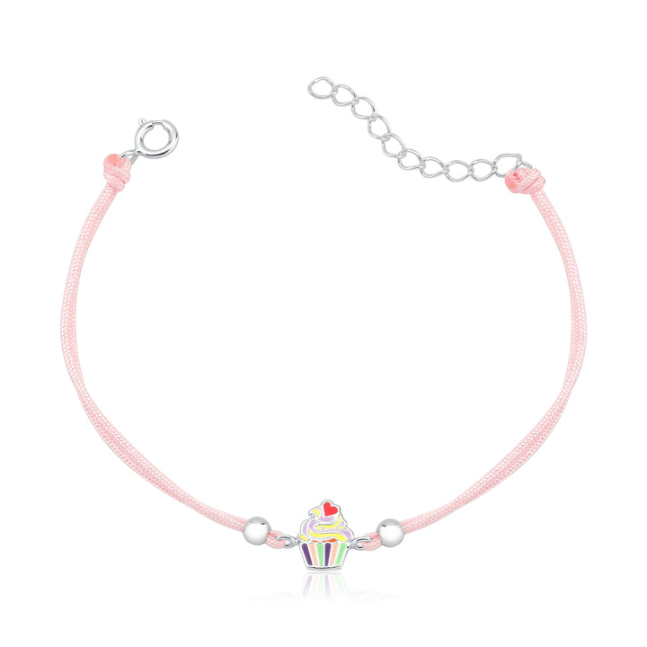 Pulseira De Prata Infantil Cupcake Com Resina Colorida